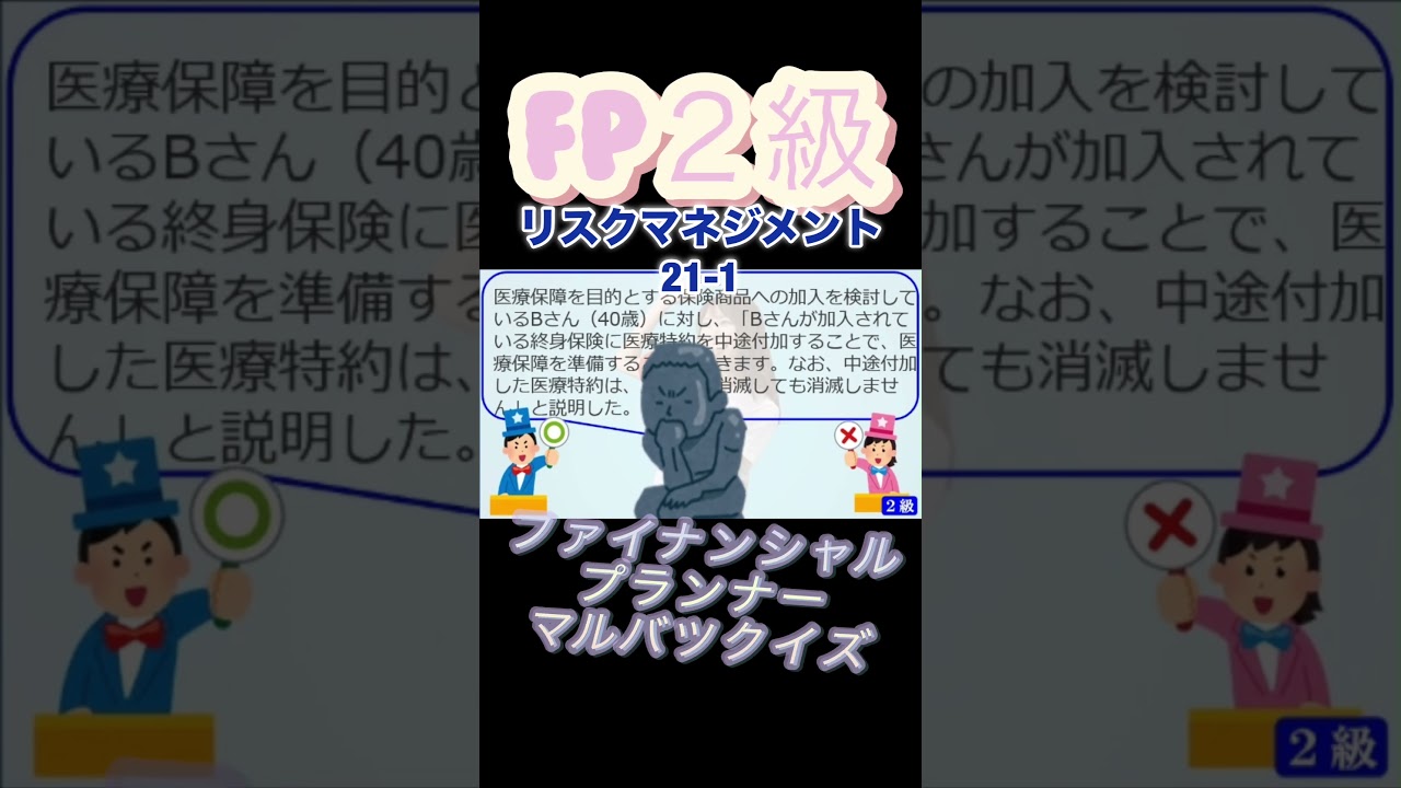 【FP2級】リスクマネジメント21-1 #ファイナンシャルプランナー#◯× クイズ#マルバツ#FP#3級#2級#教育#簿記#金融#株式#税金#保険#猫#ライフ#犬#相続#過去問#1分で知識アップ ファイナンシャルプランナー(FP2級・3級) X LINE コピー 2025.12.13