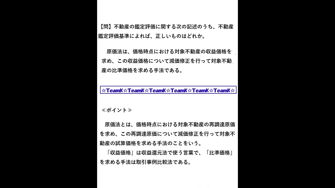 【Team K】宅建過去問・練習問題selection一問一答解説375☆宅地建物取引士試験・不動産鑑定士試験対策講義☆#shorts #宅地建物取引士試験#不動産鑑定士試験#ダブル合格#トリプル合格