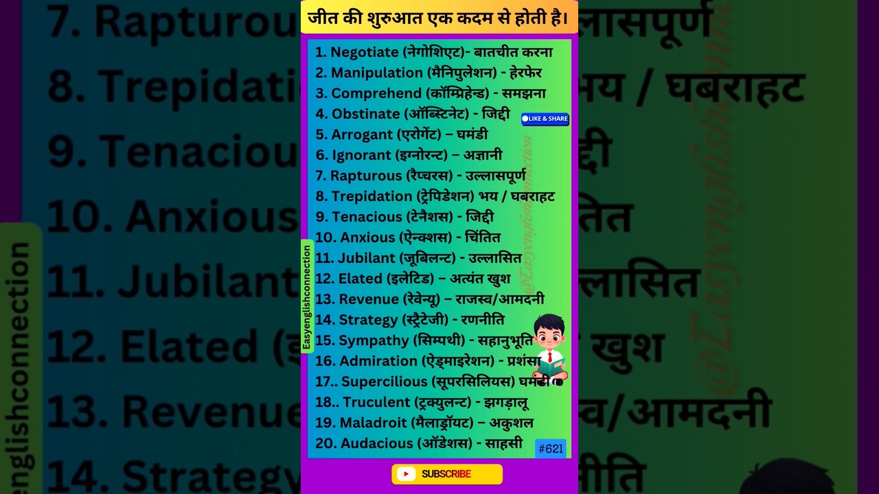 New difficult words with hindi meaning for spoken english 👍 #learnenglish #shorts #ielts #621 #yt