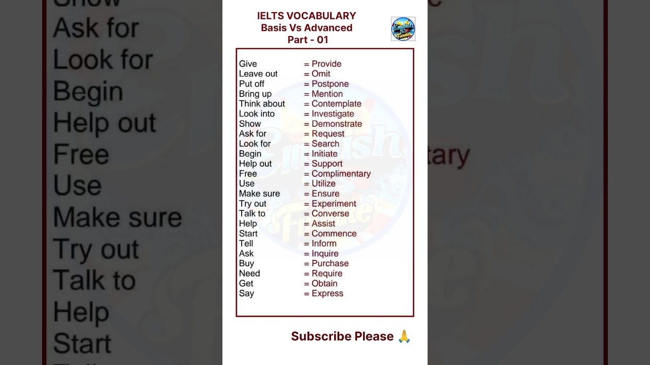 “IELTS Vocabulary” Basis Vs Advanced english Part – 01 | @Englishisfuture #shorts