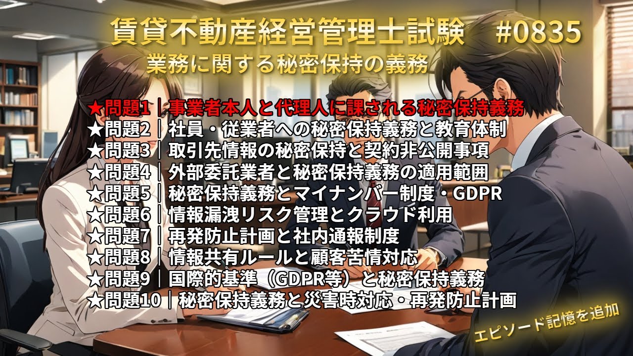 #0835 ★問題1|事業者本人と代理人に課される秘密保持義務