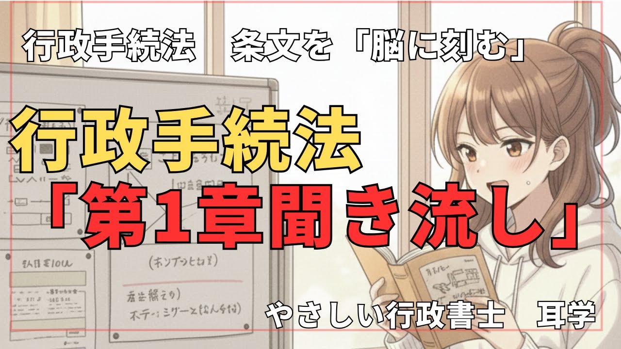 この動画では、行政書士試験の超重要科目である『行政手続法』の第1章(総則)を丁寧に音読しています。 条文を「脳に刻む」ことを目的としており、通勤・通学中、家事の合間、就寝前などの聞き流し学習に最適です。