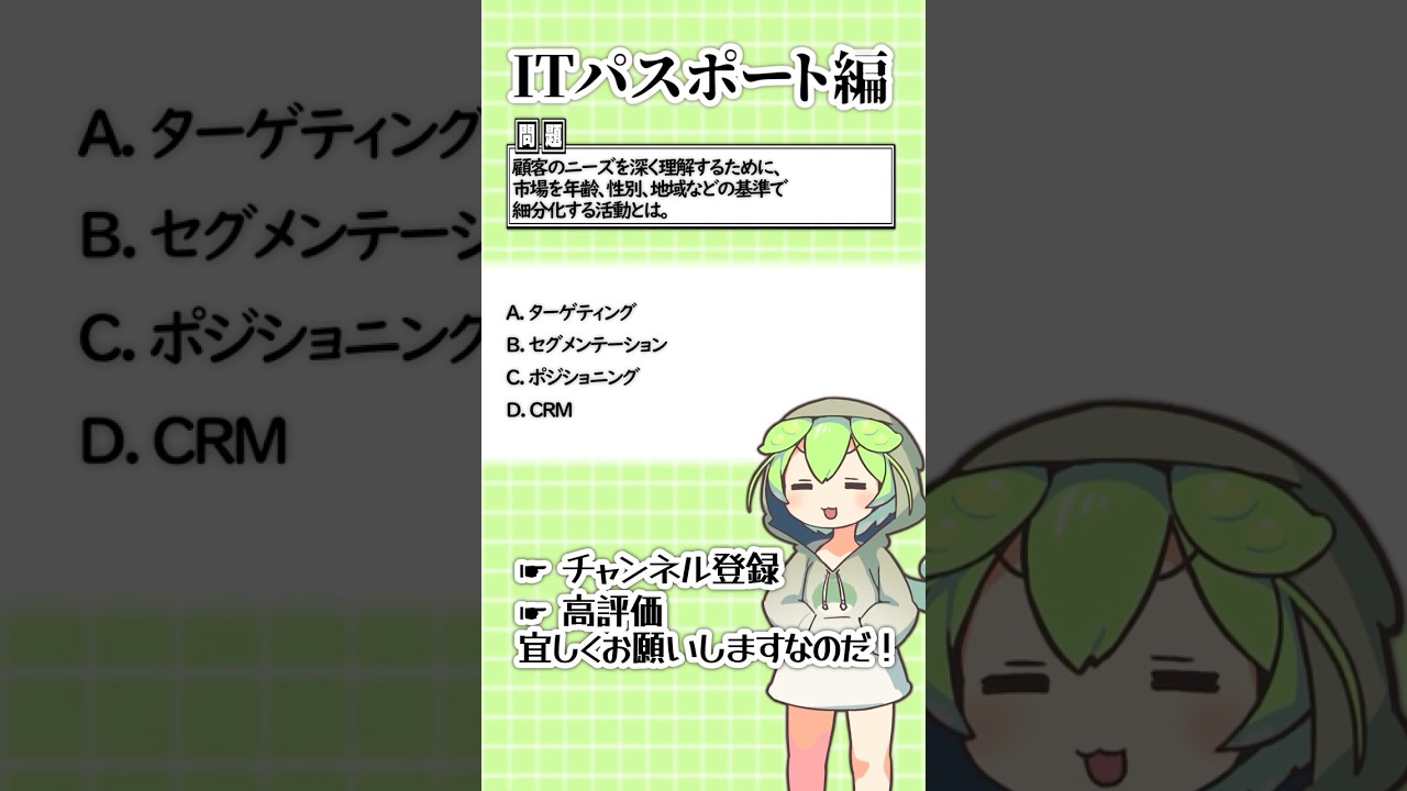 聞いて覚える!ITパスポートの4択問題を手軽に解くのだ!76 #ずんだもん #資格 #itパスポート ITパスポート(iパス) X LINE コピー 2025.12.21 ご視聴頂きありがとうございます! コメント・高評価とても励みになります。 ◆Voicebox :ずんだもん #ずんだもん #資格 #IT