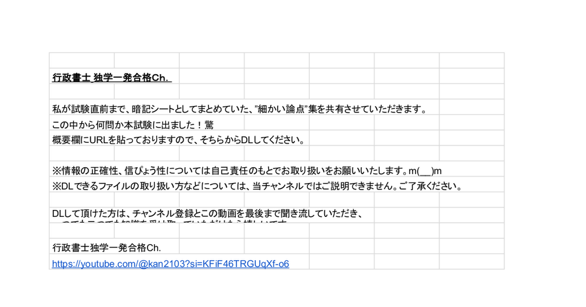 行政書士の独学をしながら、各種問題集や模試に出てきた比較的細かいと思われるが、本試験に出たら嫌な論点をまとめていたエクセルを共有させていただきます。
