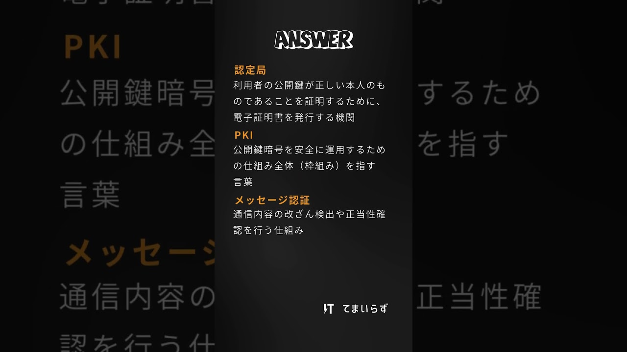 #基本情報技術者試験 #ITパスポート #認定局 #PKI #電子証明書 #公開鍵暗号 #情報セキュリティ #情報処理 #勉強垢 #てまいらず