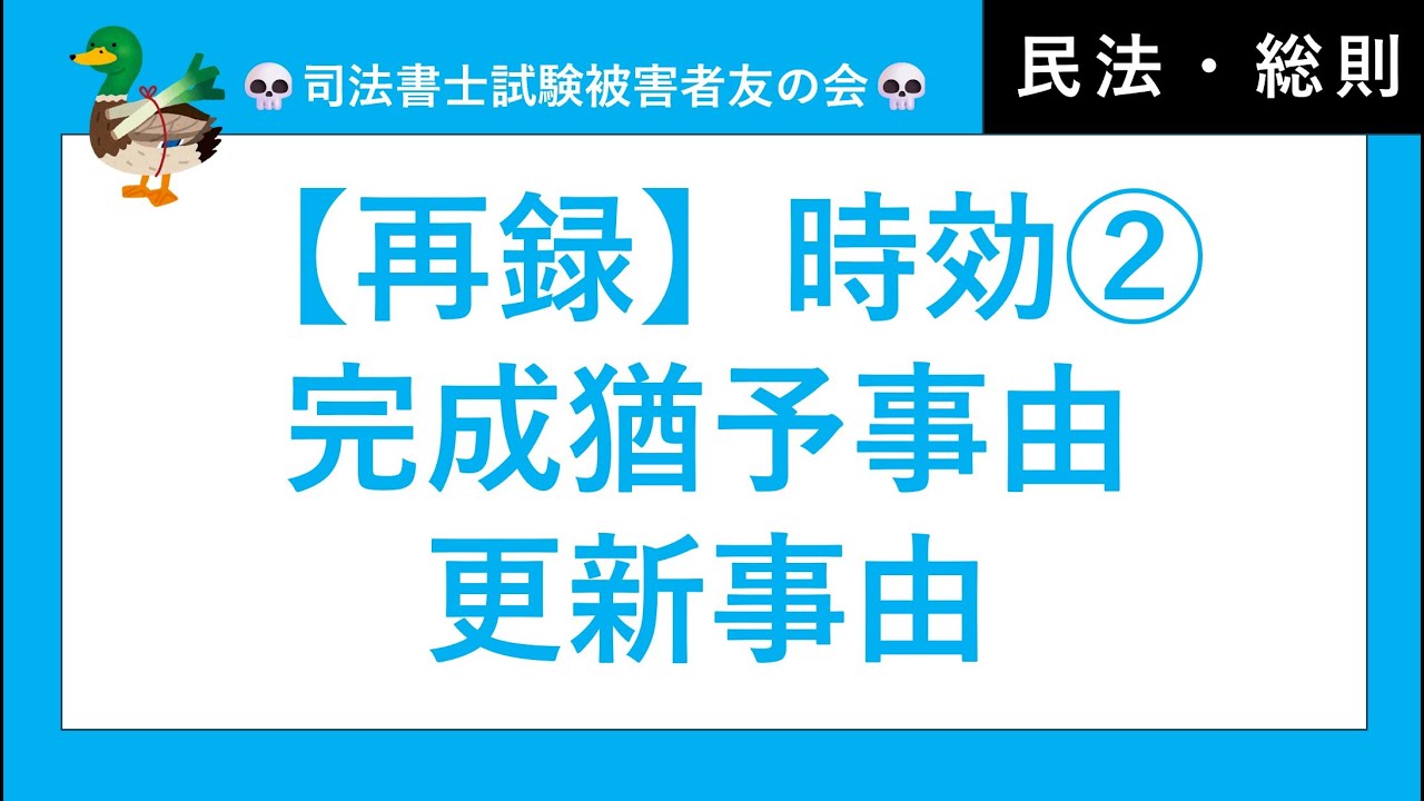 【司法書士・行政書士・公務員試験】再録版時効②、完成猶予事由、更新事由、裁判上の請求、強制執行、担保権実行、仮差押・仮処分、催告、協議を行う旨の合意、承認 民法総則