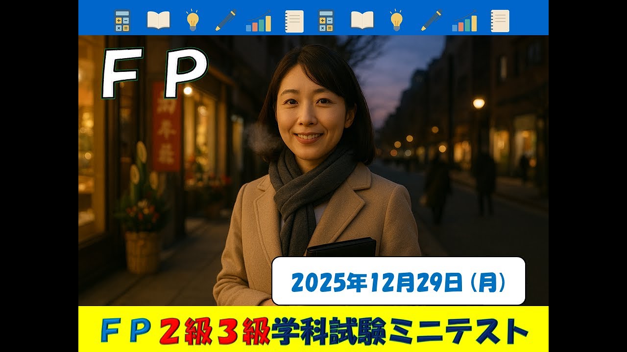ファイナンシャルプランナー(FP2級・3級)この動画では、ファイナンシャルプランナー、2級と3級の学科試験の選択肢を、1問ずつの○×問題にし、毎日、各カテゴリーから1問ずつ出題しています。短時間でも継続して取り組むことで知識が定着し、自信につながります。日々の積み重ねが合格への最短ルートです。ぜひ毎日活用して、合格をつかみ取ってください!