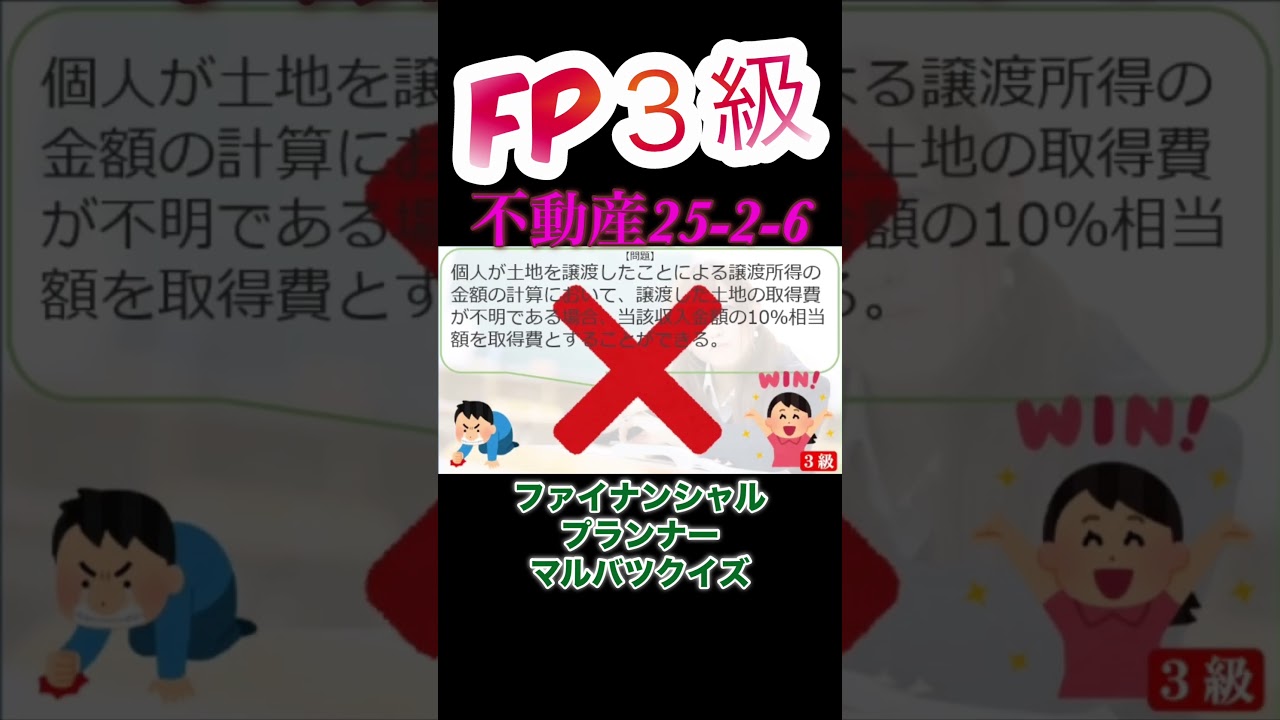 【FP3級】不動産25-2-6 #ファイナンシャルプランナー#◯×クイズ#マルバツ# FP#3級#2級#教育#簿記#金融#株式#税金#保険#猫#ライフ#犬#相続#過去問#1分で知識アップ ファイナンシャルプランナー(FP2級・3級) X LINE コピー 2025.12.30