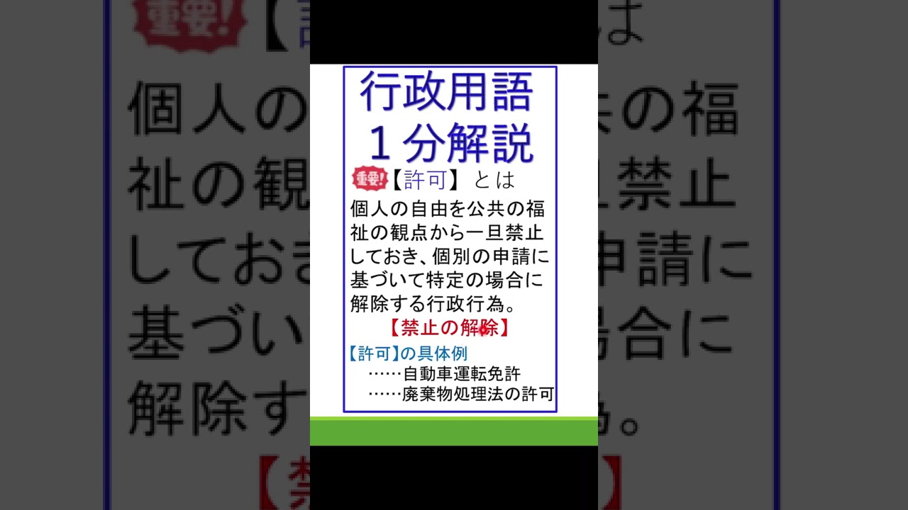 【②行政用語1分解説】「許可」#行政書士試験 #公務員試験 #行政法 #許可 #shorts