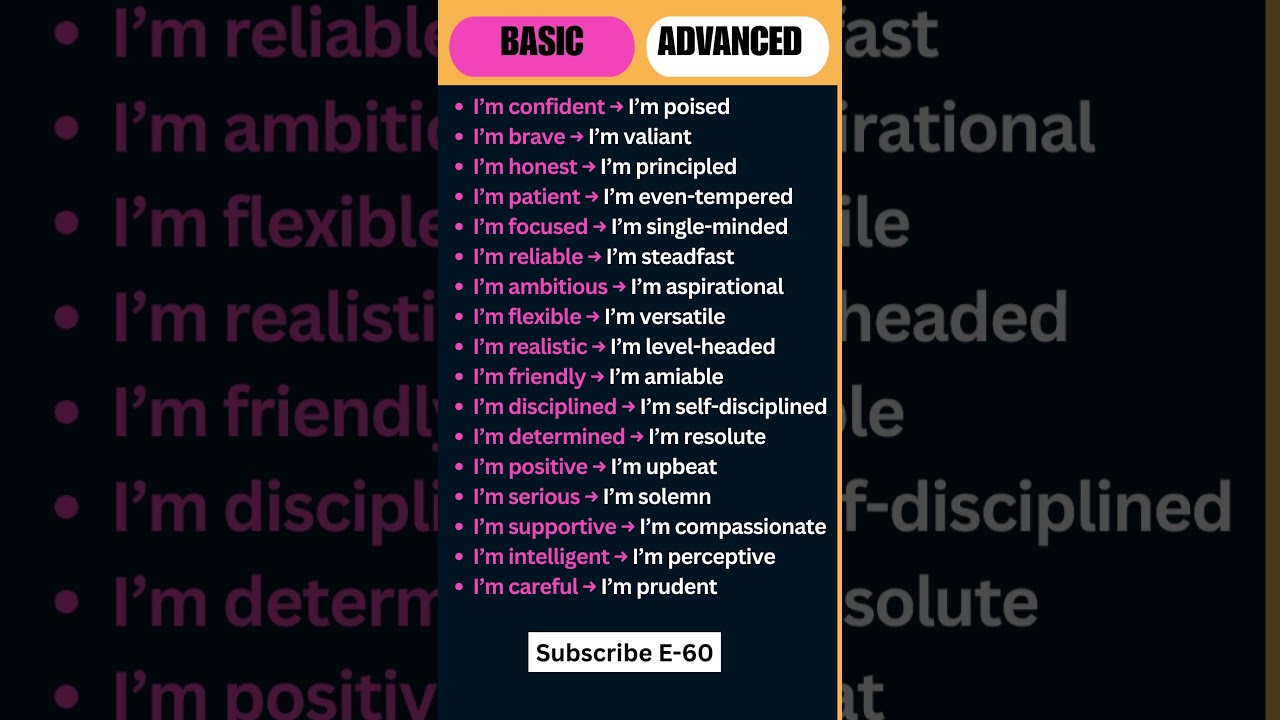 Advanced “I’m …” Expressions for IELTS Speaking (Band 9 Level) #ieltsprepration #advancedvocabulary Upgrade your IELTS Speaking answers with powerful Band 9 personality vocabulary. These advanced alternatives help you avoid repetition, sound natural, and impress examiners with C1–C2 level English. Perfect for IELTS Speaking Part 1, 2, and 3, job interviews, and confident daily communication.