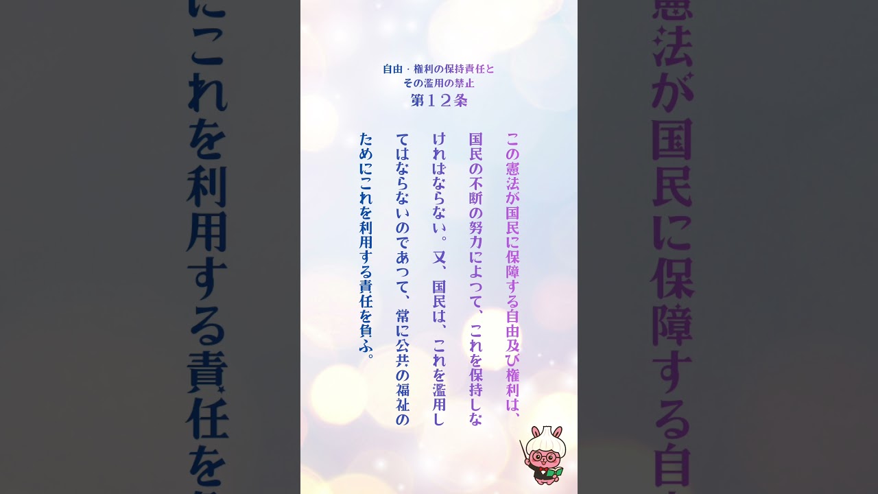 日本国憲法 第12条 #司法書士 #憲法 #行政書士 #耳勉 #条文 #資格 行政書士 X LINE コピー 2026.01.03 目が疲れたら耳勉👂 文字でも確認できるし、ちょっとしたスキマ時間のお供にどうぞ🎁 行政法とか民法もアップ予定です👍 みんなで合格を掴み取ろう🔥