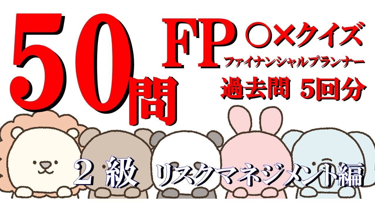 【FP2級】50問リスクマネジメント8 ライナンシャルプランナー〇×クイズ。マルバツ。わかりやすい。高卒式だから安心。聴き流しでも勉強#解説#猫#犬#1分で知識アップ#うさぎ#NISA#fp2#fp3