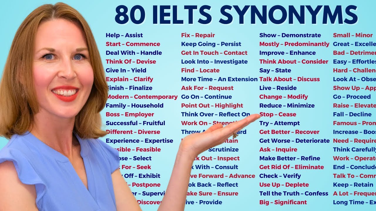 Today you’ll learn 80 advanced IELTS synonyms to improve your vocabulary and boost your performance in both IELTS Writing and Speaking.