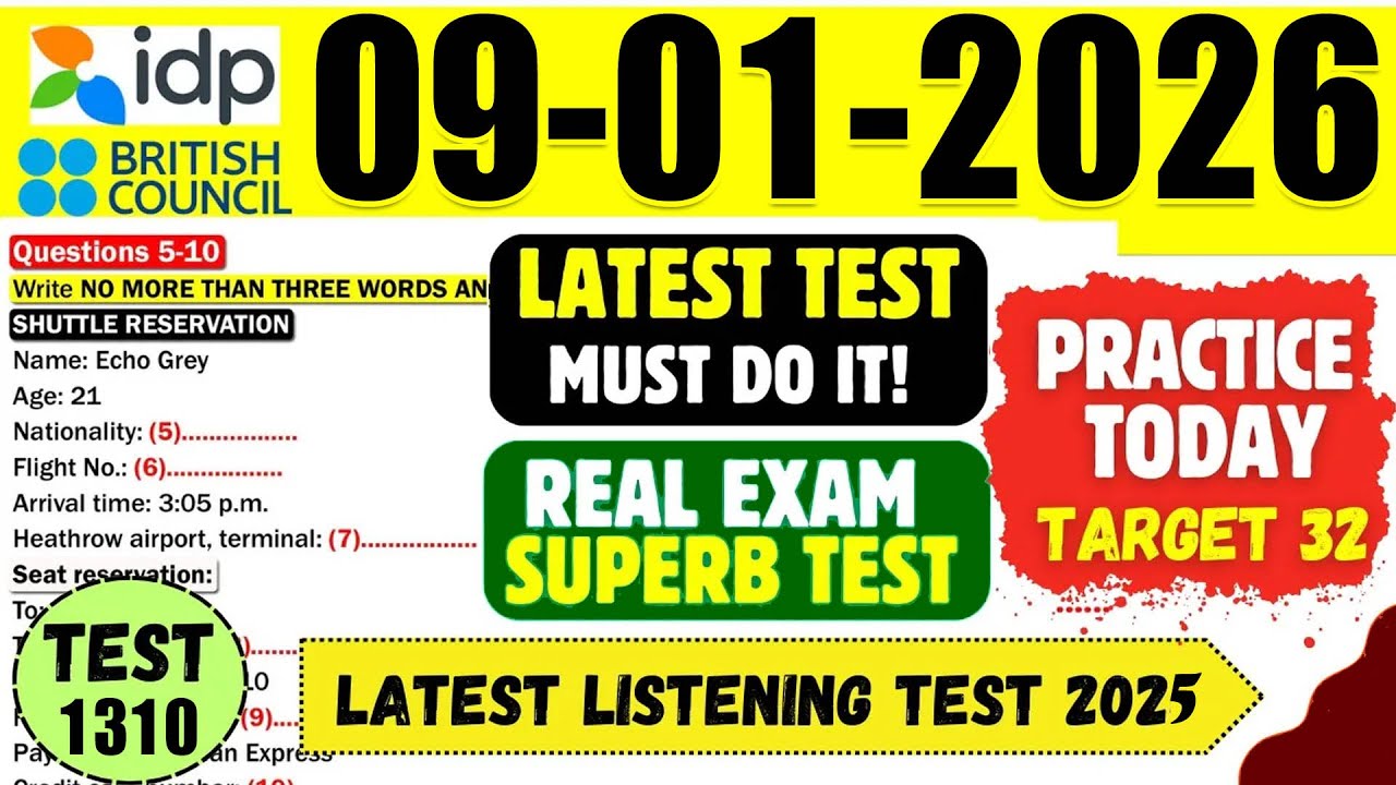 IELTS Listening Practice Test 2026 with Answers | 09.01.2026 | Test No – 1310