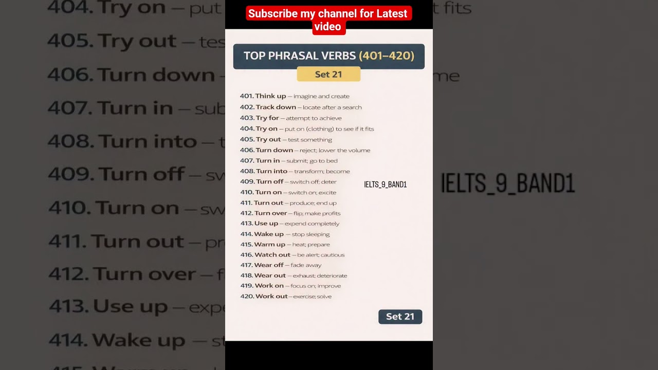 Agar aap apni English fluency aur IELTS speaking band score improve karna chahte ho, to ye Top Phrasal Verbs – Set 21 (401–420) aapke liye perfect hain 🚀