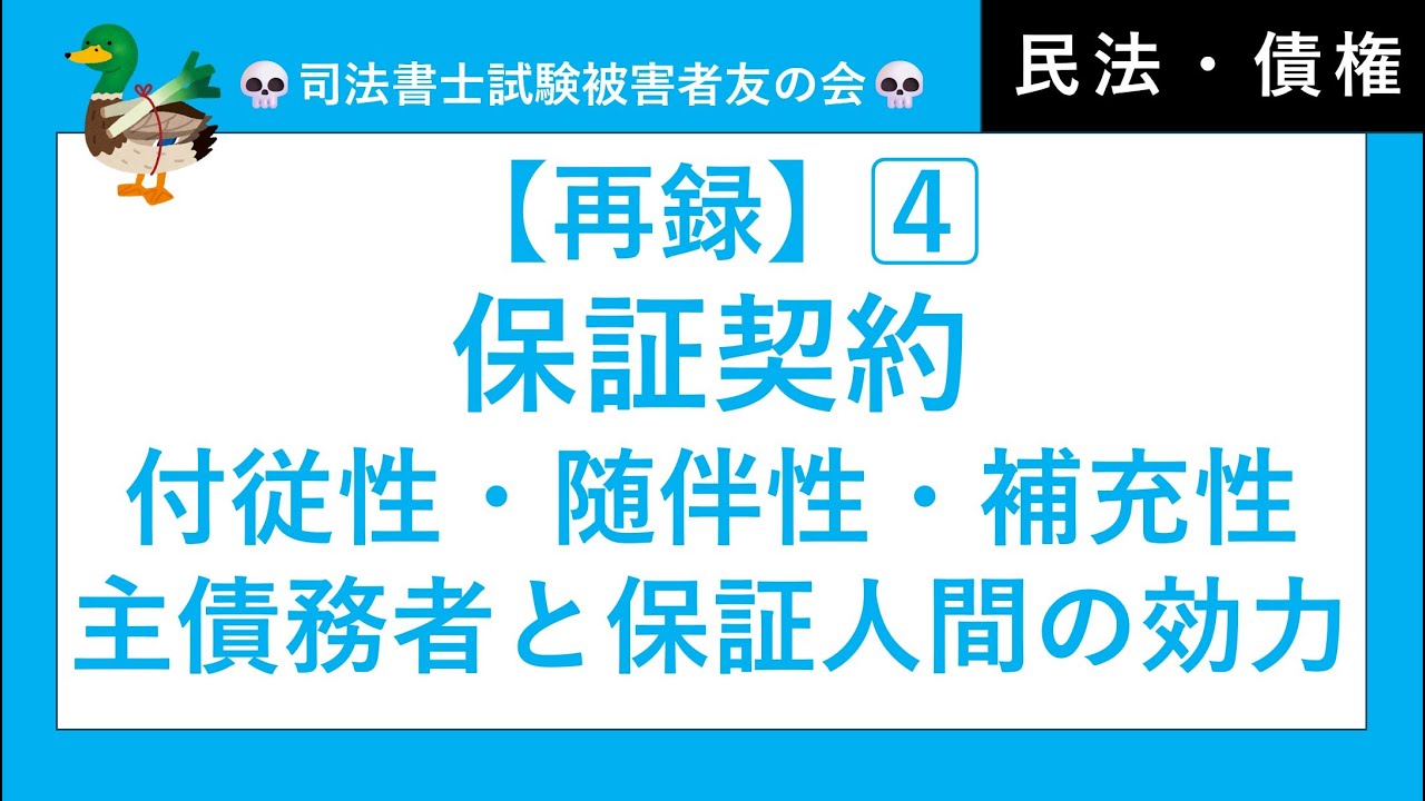 【司法書士・行政書士・公務員試験】4⃣保証契約、付従性、随伴性、補充性、主債務者と保証人間の影響関係、保証人の資格、催告の抗弁権、検索の抗弁権 民法