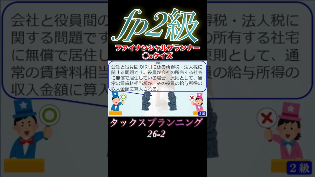 【FP2級】 タックスプランニング26-2 #ファイナンシャルプランナー#◯× クイズ#マルバツ#FP#3級#2級#教育#簿記#金融#株式#税金#保険#猫#ライフ#犬#相続#過去問#1分で知識アップ ファイナンシャルプランナー(FP2級・3級) X LINE コピー 2026.01.16