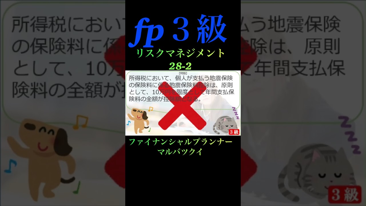 【FP3級】リスクマネジメント28-2 #ファイナンシャルプランナー#◯×クイズ#マルバツ# FP#3級#2級#教育#簿記#金融#株式#税金#保険#猫#ライフ#犬#相続#過去問#1分で知識アップ ファイナンシャルプランナー(FP2級・3級) X LINE コピー 2026.01.18