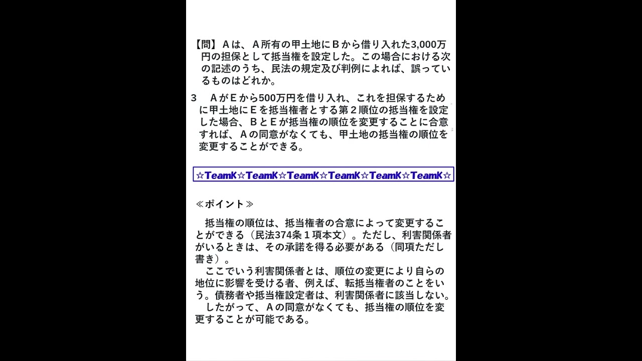 【Team K】宅建過去問・練習問題selection一問一答解説409☆マンション管理士・管理業務主任者試験対策講義☆#shorts #マンション管理士試験#管理業務主任者試験 #ダブル合格