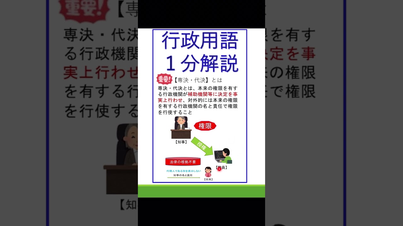 【⑲行政用語1分解説】「専決・代決」#行政書士試験 #公務員試験 #行政法 #行政行為 #専決・代決 #shorts 行政書士 X LINE コピー 2026.01.19 #行政法 #一般廃棄物 #浄化槽