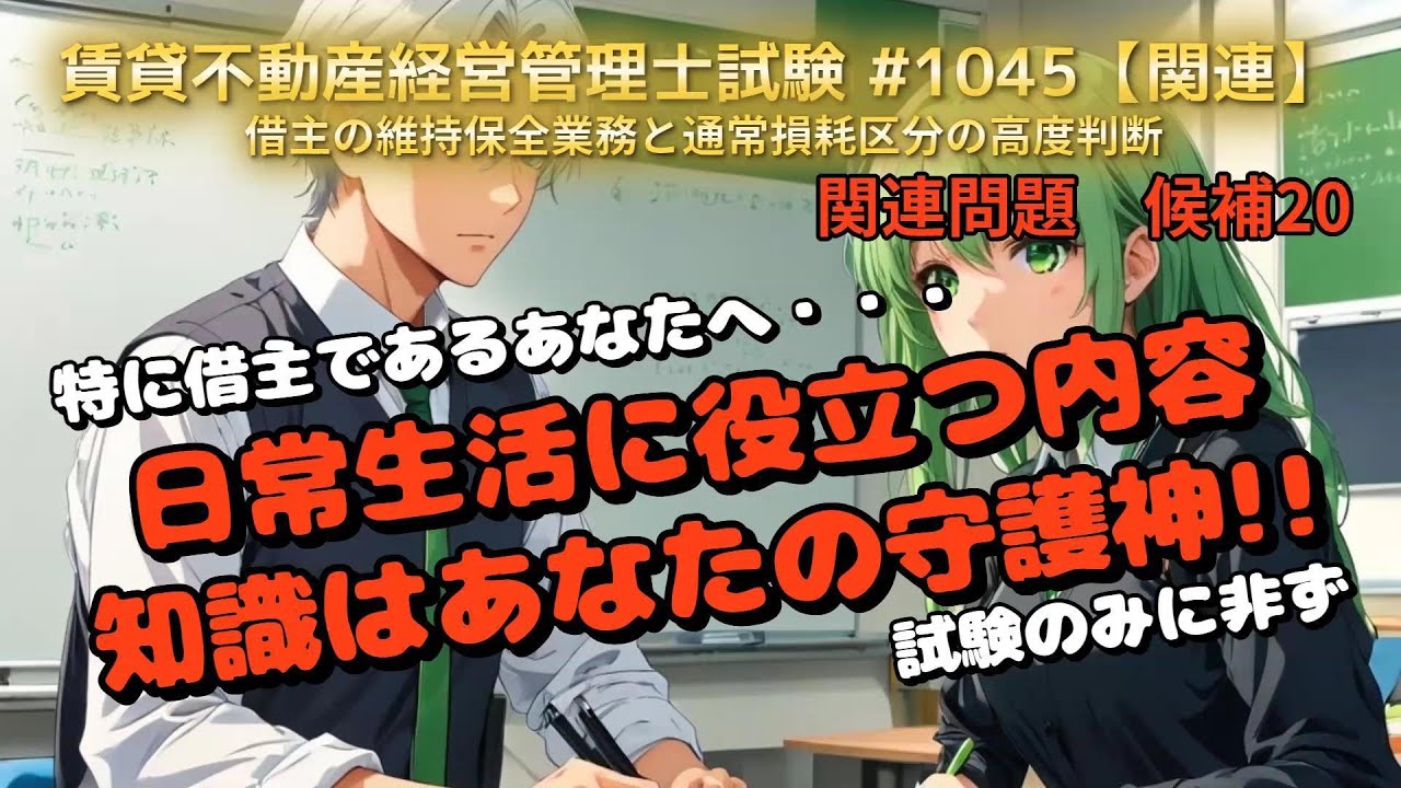 🎯 対象者 – 賃貸不動産経営管理士試験の受験者 – 試験対策の最終仕上げをしたい方 – 法令・条文に苦手意識がある方 – 記憶定着を効率化したい方 ※ チャンネル登録して頂いた方限定!(期間あり)! 万一、退去する際に、例えば『壁に穴開けちゃった』、『クロス汚してしまった』、『フローリングに傷付けた』等、これってどうなのを写真・動画を送付頂ければ、敷金診断士・住宅診断士・賃貸不動産メンテナンス主任者・管理業務主任者等としての中立的立場よりコメントさせて頂きます。また、不動産会社の対応の愚痴なんかもコメントください。 【自己紹介】 宅地建物取引士・管理業務主任者・競売不動産取引主任者・任意売却士・敷金診断士・防犯設備士・住宅診断士・賃貸住宅メンテナンス主任者等である玄空が紐解いていきます。