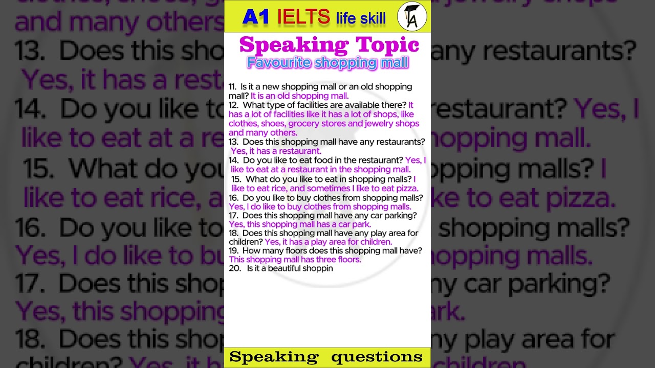 IELTS Life Skill A1 Speaking Topic : Shopping mall 2 : UKVI Test 2026