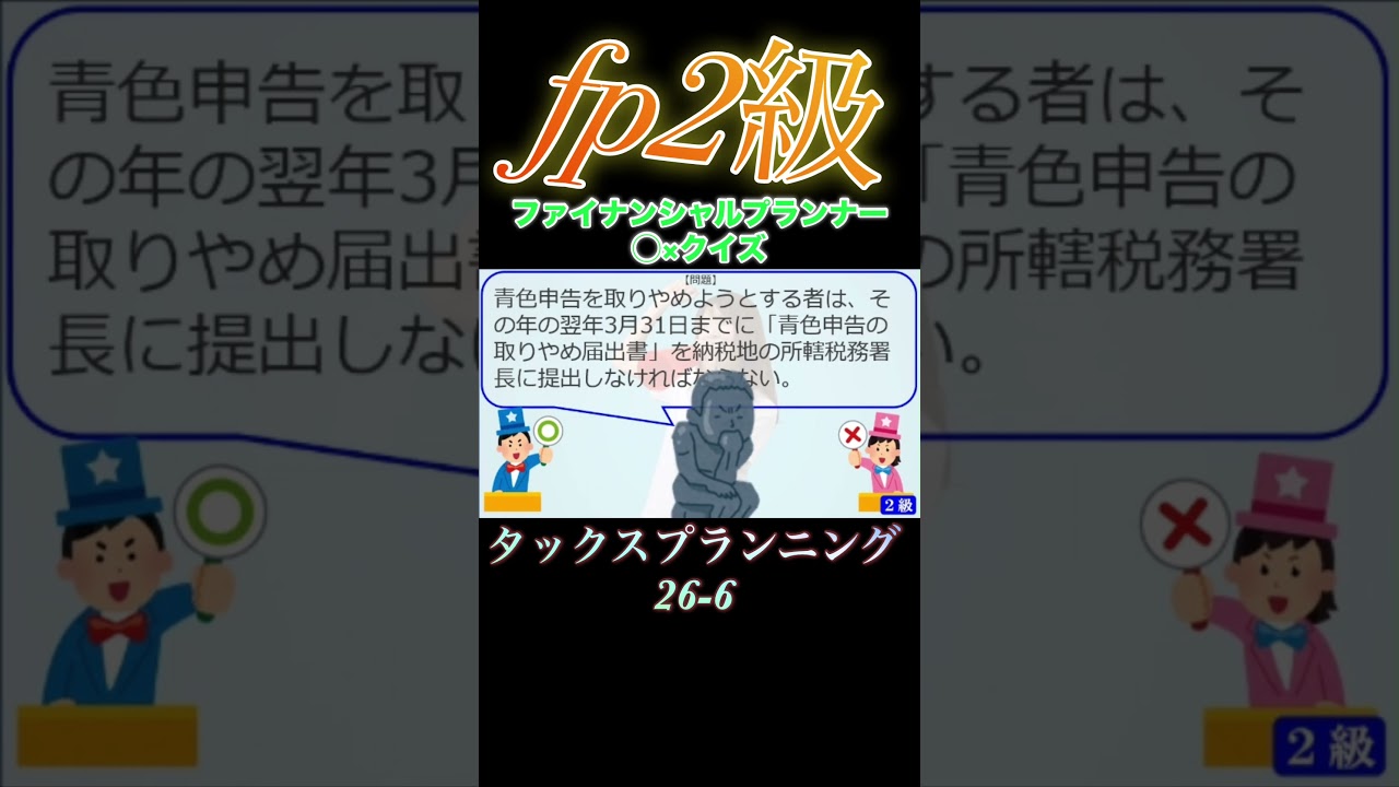【FP2級】 タックスプランニング26-6 #ファイナンシャルプランナー#◯× クイズ#マルバツ#FP#3級#2級#教育#簿記#金融#株式#税金#保険#猫#ライフ#犬#相続#過去問#1分で知識アップ ファイナンシャルプランナー(FP2級・3級) X LINE コピー 2026.01.28