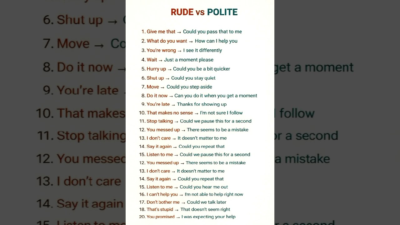 RUDE vs POLITE #english #vocabulary #spoken #words #ielts #grammar #viral #trends #video #shorts