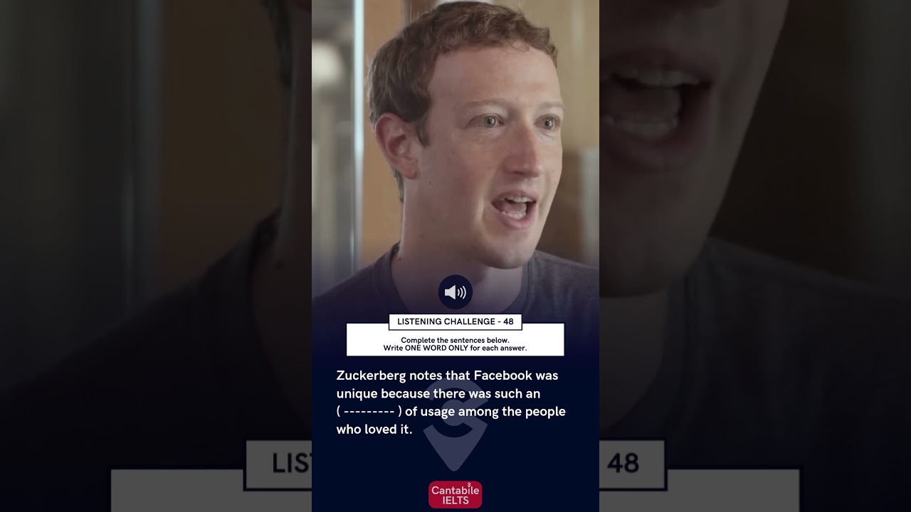 The answer key is in the PINNED COMMENT! Cantabile for more daily challenges! #IELTS #IELTSListening #MarkZuckerberg #Facebook #Meta #SentenceCompletion #EnglishListening #Shorts #LearnEnglish