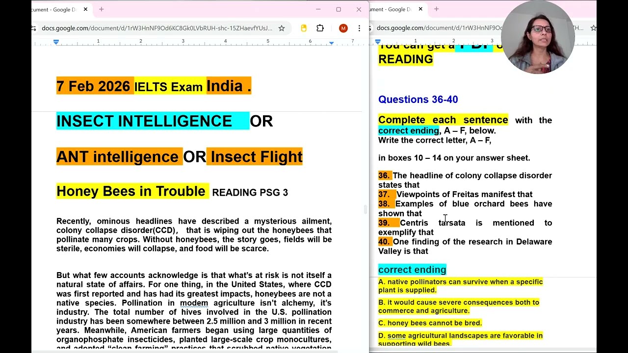 FEB 2026 ielts exam india HONEY BEES READING