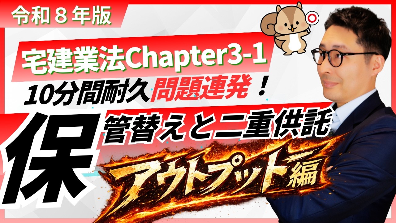 【宅建業法3-1保管替えと二重供託:アウトプット編】重要過去問を連続出題&解説講義。営業保証金の保管替え、二重供託、還付について重要知識を初心者向けに解説。棚田式コラボ動画。