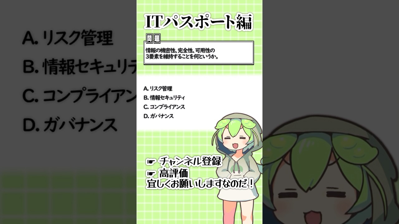 聞いて覚える!ITパスポートの4択問題を手軽に解くのだ!130 #ずんだもん #資格 #itパスポート