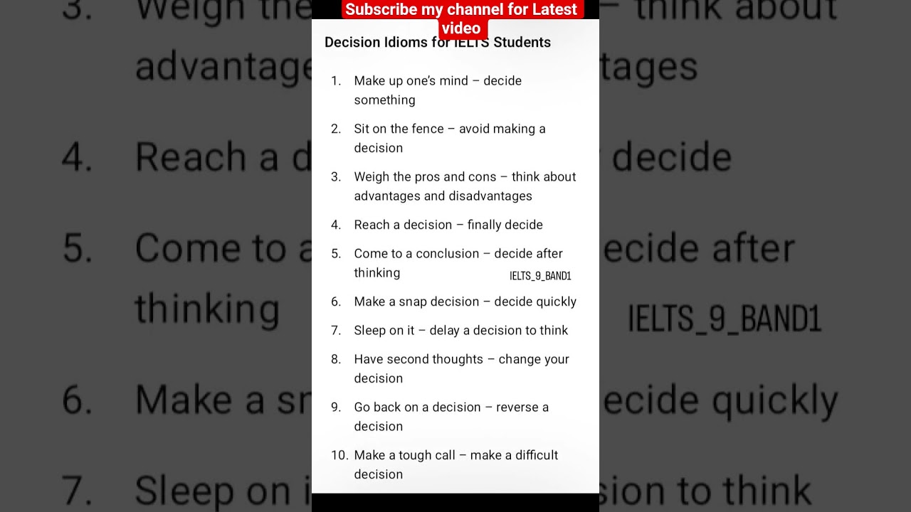 In this video, you will learn powerful Decision Idioms that can instantly improve your IELTS Speaking and Writing score. Using idioms naturally in the IELTS test can significantly boost your vocabulary band score.