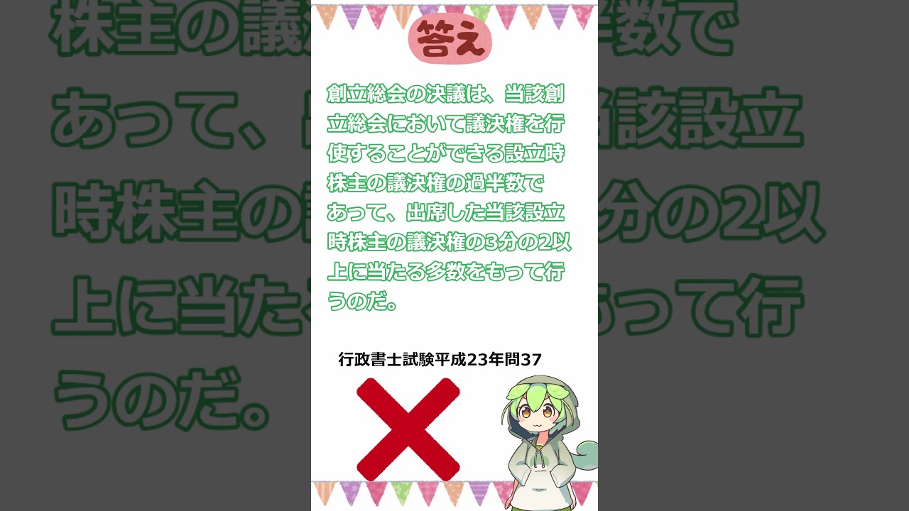 商法・会社法一問一答 33『行政書士試験対策』 〇×問題 #行政書士#公務員試験#ずんだもん#shorts @リーガルずんだもん 行政書士 X LINE コピー 2026.02.18 チャンネル登録よろしくなのだ。 素材提供 VOICEVOX:ずんだもん 立ち絵(坂本アヒル)