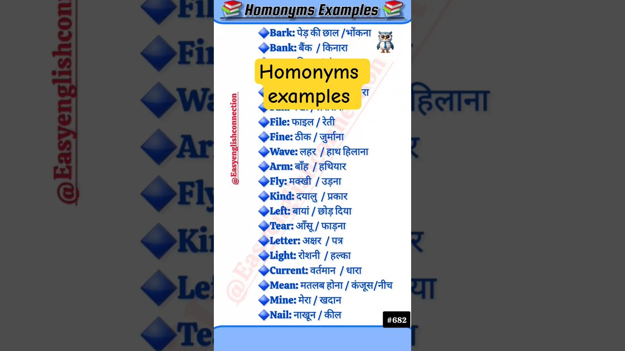 Homonyms in english 🔥 Homonyms examples 🔥 Competitive words in english #shorts #ielts #learnenglish
