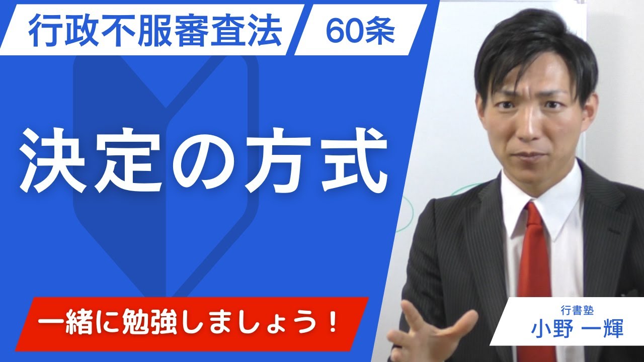 この動画では行政不服審査法60条 決定の方式について、条文の構造から試験で問われるポイントまでを徹底的に解説します。