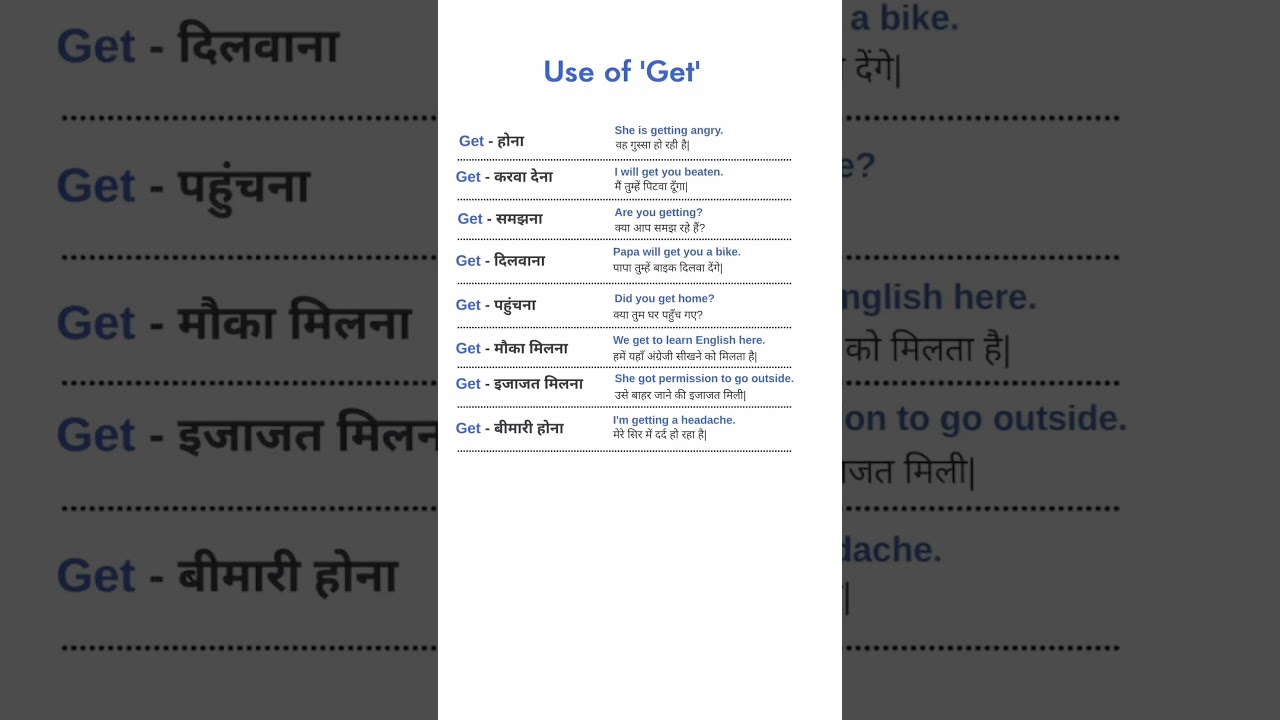 Let’s learn the use of word ‘GET’ in the english sentences.