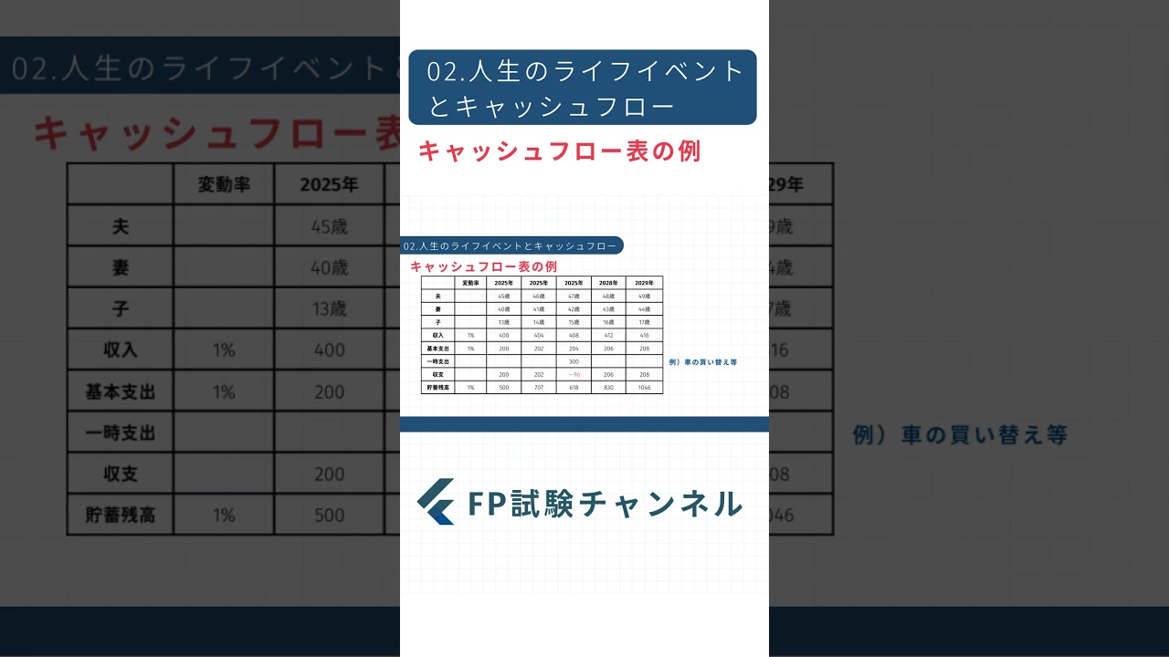 1-2【ライフプランニング】キャッシュフロー表の例 #short  #FP2級 #FP1級 #聞き流し