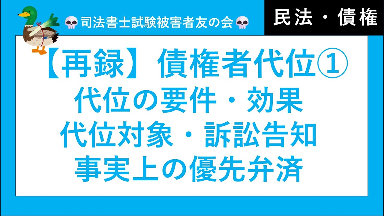 【司法書士・行政書士・公務員試験】債権者代位①、要件、効果、代位対象、行使の範囲、訴訟告知、事実上の優先弁済 民法