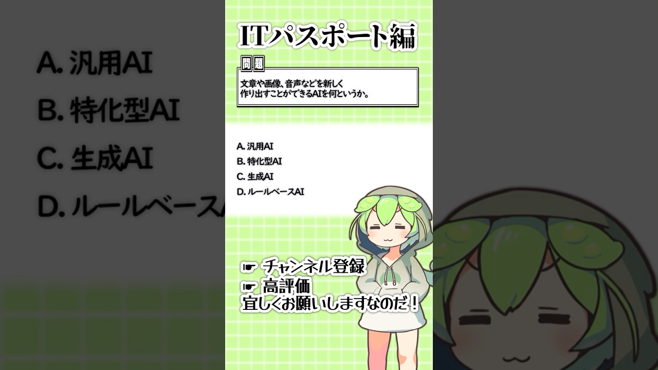 聞いて覚える!ITパスポートの4択問題を手軽に解くのだ!161 #ずんだもん #資格 #itパスポート ITパスポート(iパス) X LINE コピー 2026.03.04 ご視聴頂きありがとうございます! コメント・高評価とても励みになります。 ◆Voicebox :ずんだもん #ずんだもん #資格 #itパスポート