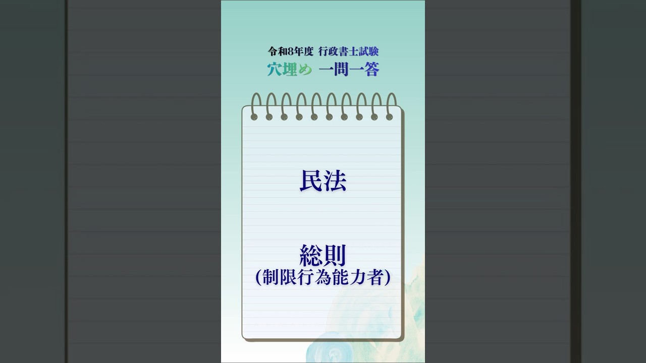 【Day 88】行政書士試験 穴埋め一問一答 / 民法 制限行為能力者 成年被後見人【R8】