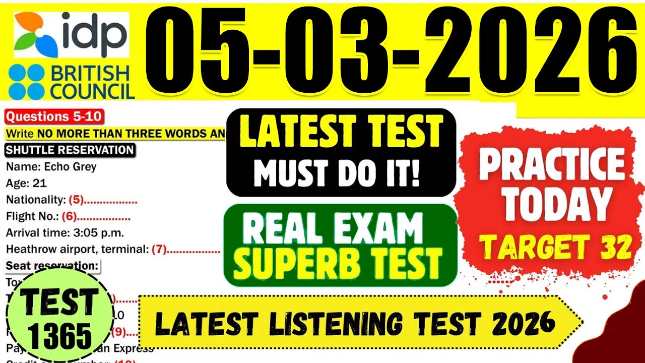 IELTS Listening Practice Test 2026 with Answers | 05.03.2026 | Test No – 1365
