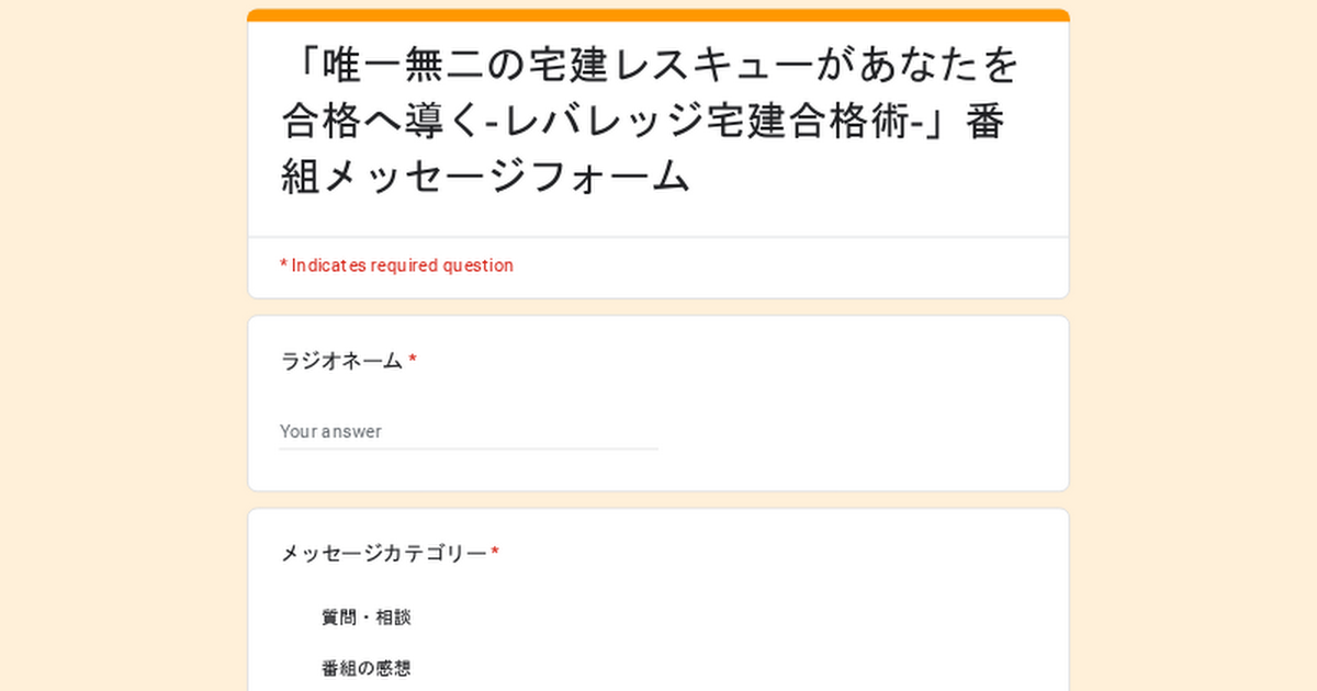 「唯一無二の宅建レスキューがあなたを合格へ導く-レバレッジ宅建合格術-」番組メッセージフォーム