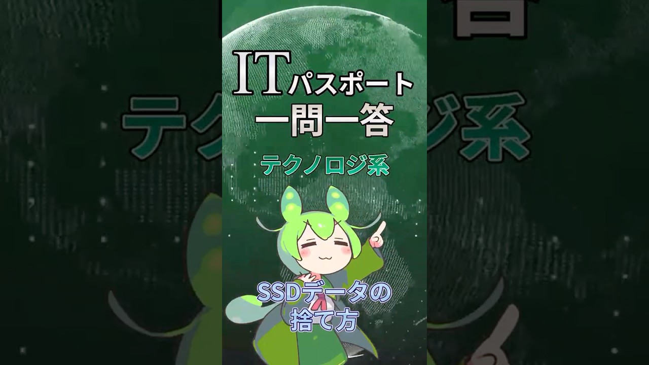 【ITパスポート】過去問一問一答【テクノロジ系】セキュリティ|SSDデータの捨て方 #shorts #itパスポート #ずんだもん