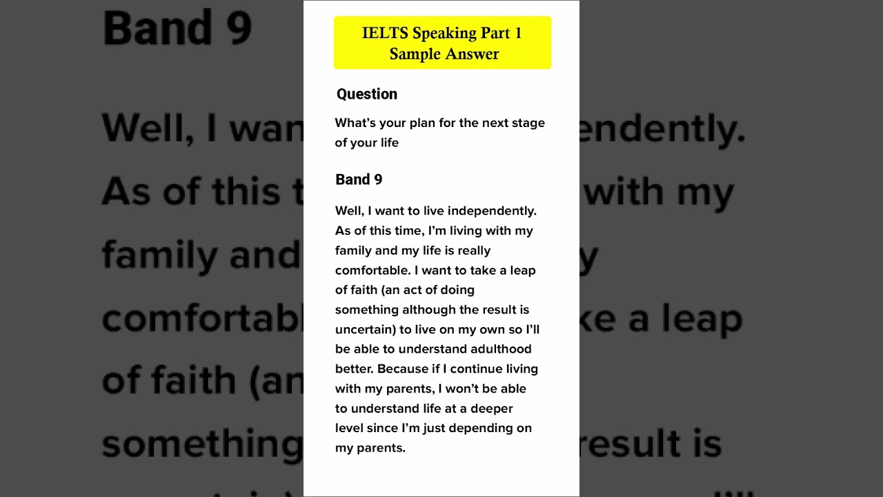 Well, I want to live independently. As of this time, I’m living with my family and my life is really comfortable. I want to take a leap of faith (an act of doing something although the result is uncertain) to live on my own so I’ll be able to understand adulthood better. Because if I continue living with my parents, I won’t be able to understand life at a deeper level since I’m just depending on my parents.