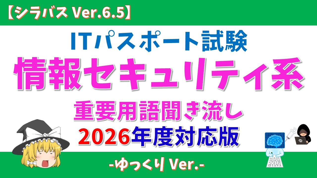 IPAにて2026年1月8日に掲載された「シラバス Ver.6.5」に対応した「情報セキュリティ系」の聞き流し動画を作りました。
