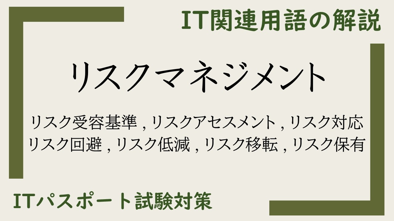 ITパスポート試験によく出る用語「リスクマネジメント」について解説しています。