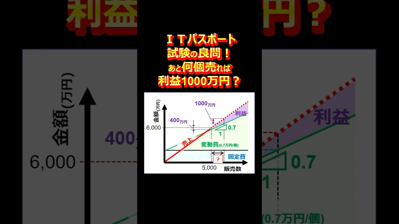 昨年のITパスポート試験に出た良問!利益1000万円達成のために必要な販売数は? #数学 #itパスポート