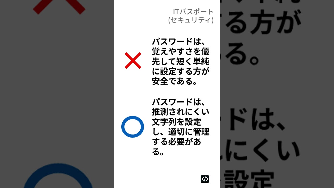 【10秒読解|ITパスポート】セキュリティ_002 ITパスポート(iパス) X LINE コピー 2026.03.162026.03.17 ITパスポートの重要用語を10秒で確認。 スキマ時間の最速復習用。