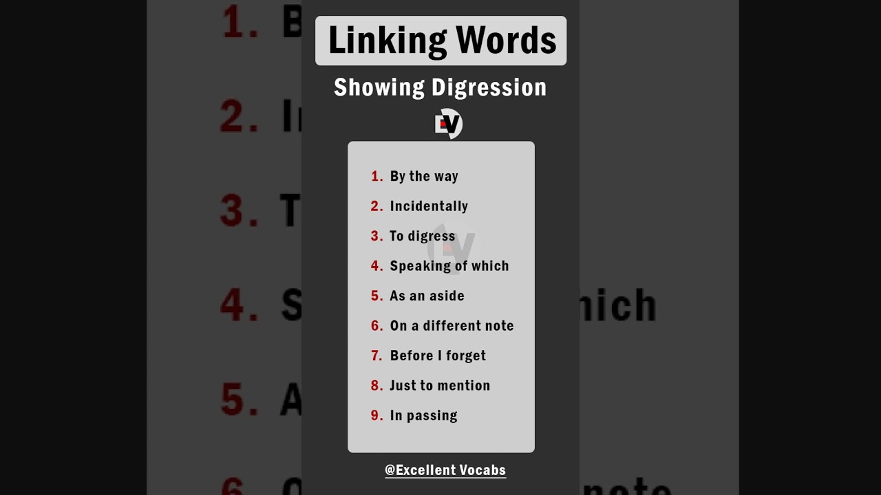 Most important and commonly used linking words in English for Writing and speaking. Digression Linking Words